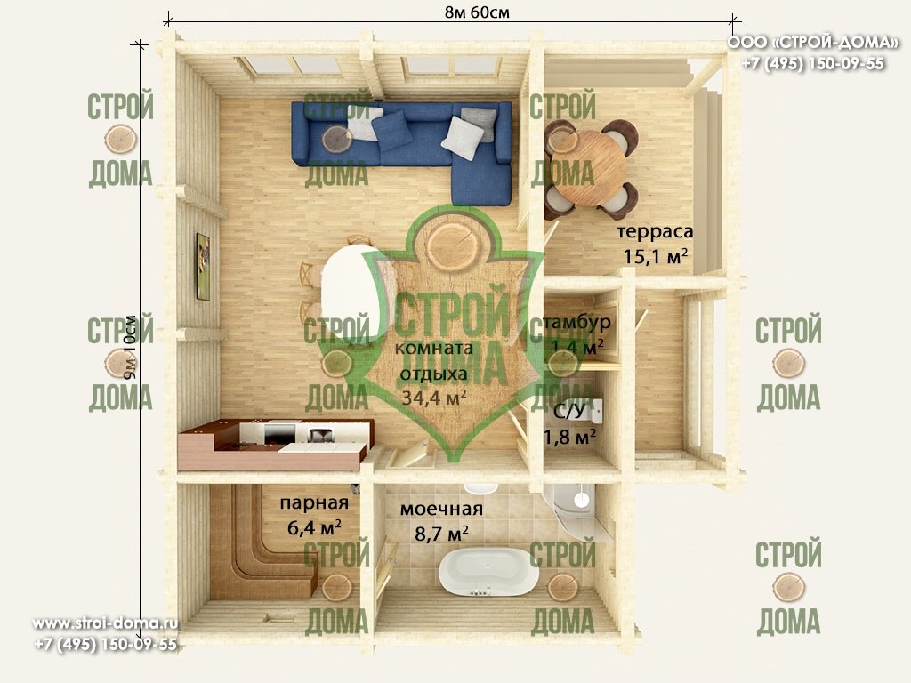 Главная -> Бани из бревна -> Баня из бревна «Русская — 78» -> 78-plan