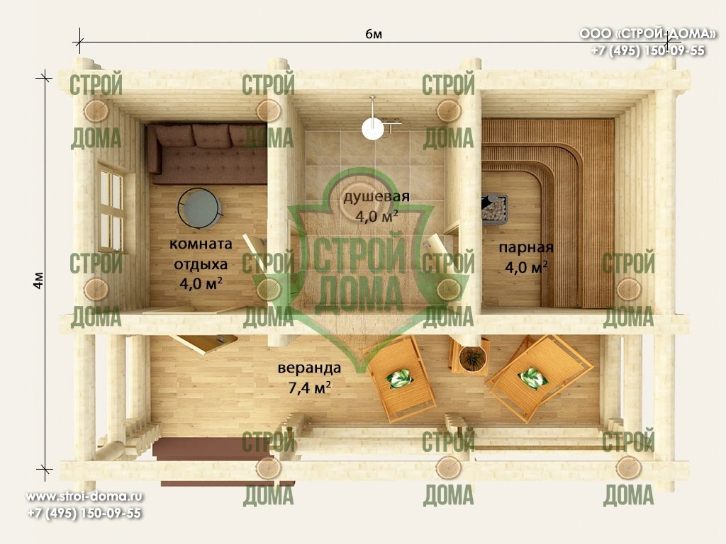 Главная -> Бани из бревна -> Баня из бревна «Русская — 23» -> План-русская-23