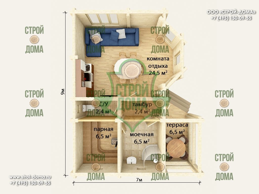 Главная -> Бани из бревна -> Баня из бревна «Русская — 63» -> plan-63