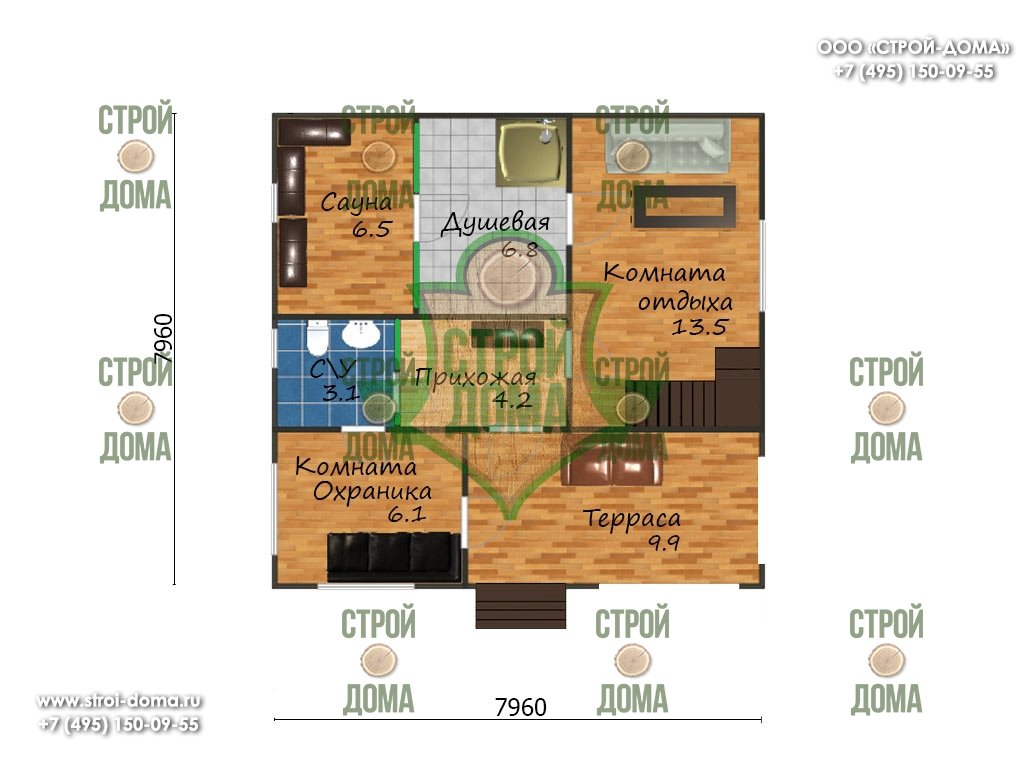 Главная -> Бани из бревна -> Баня из бревна «Русская — 83» -> 83-plan-1