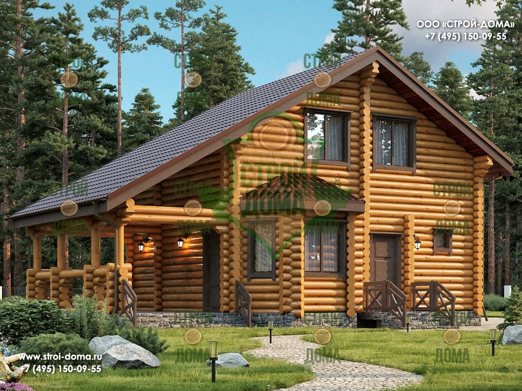 Главная -> Готовые проекты домов -> Дом из бревна «Удачный — 115» -> Вид-1-лето