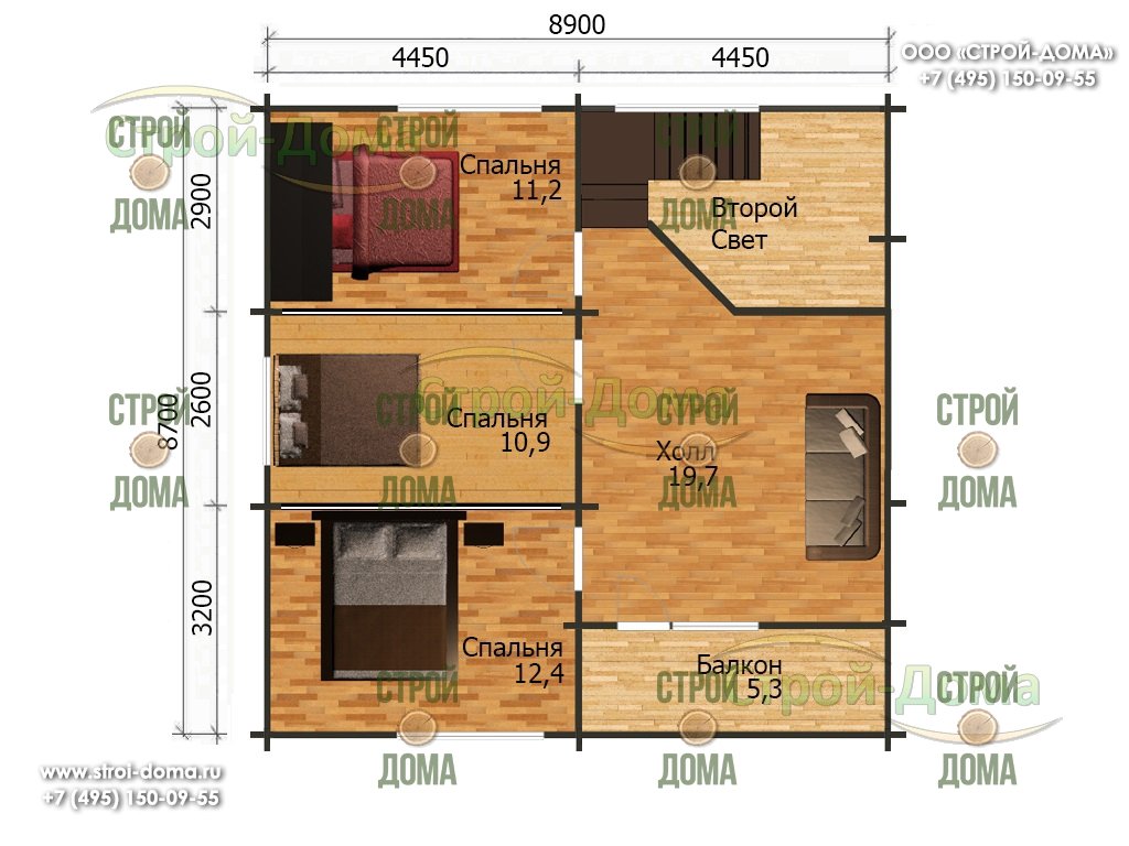 Главная -> Дома из бревна -> Дом из бревна «Удачный — 155» -> План-2