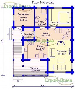 Главная -> Дома из бревна -> Дом из бревна «Удачный — 183» -> План 1 этажа для сайта