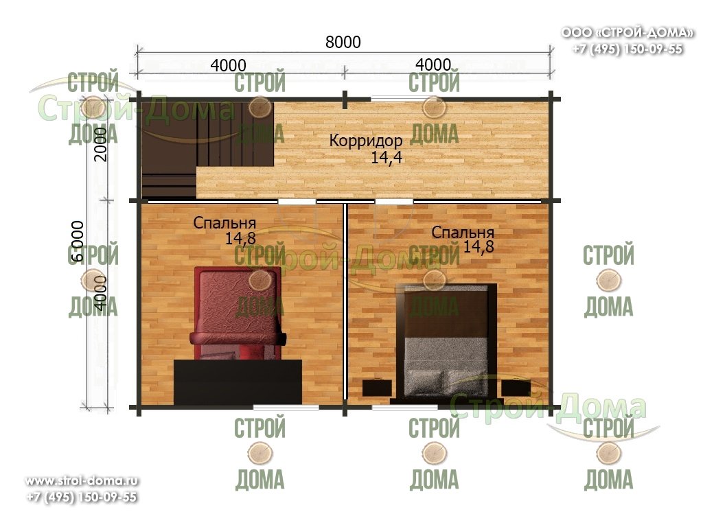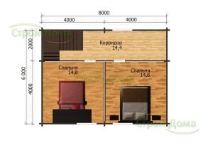 Главная -> Дома из бревна -> Дом из бревна «Удачный — 96» -> План 2 цветной