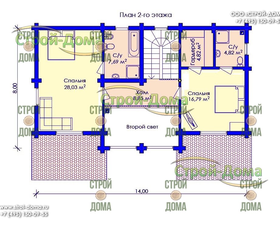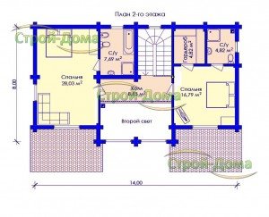 Главная -> Дома из бревна -> Дом из бревна «Успешный — 243» -> План 2 этажа для сайта