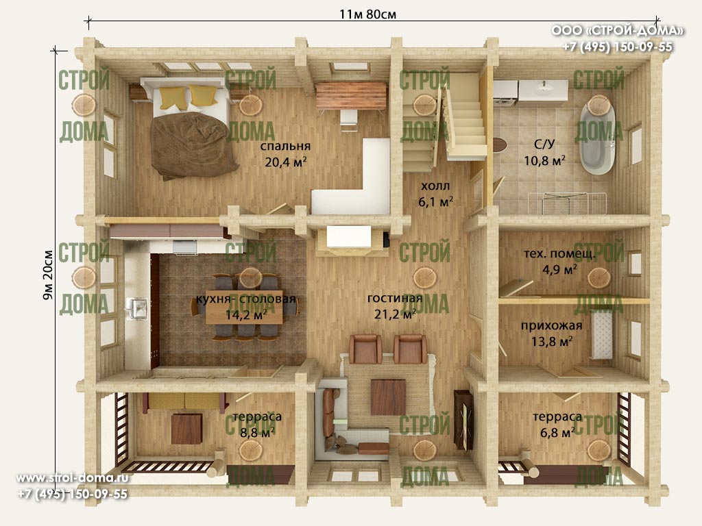 Главная -> Дома из бревна -> Дом из бревна «Успешный — 202» -> 202-plan-1