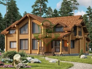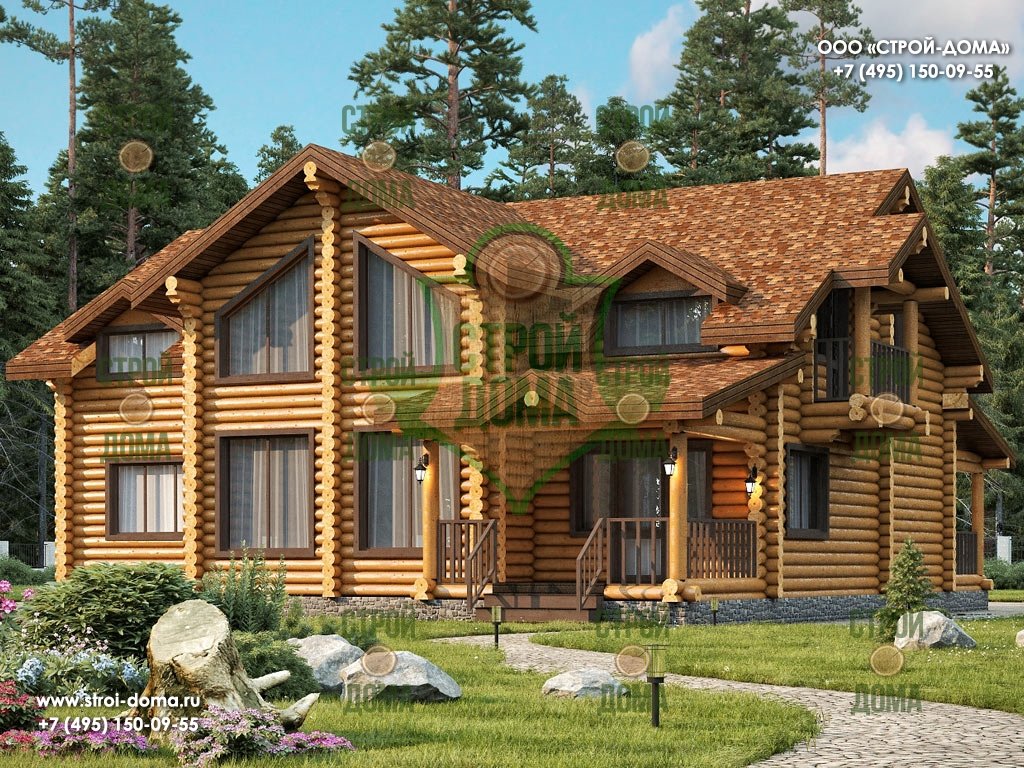 Главная -> Дома из бревна -> Дом из бревна «Успешный — 295» -> Вид-1-лето-новый